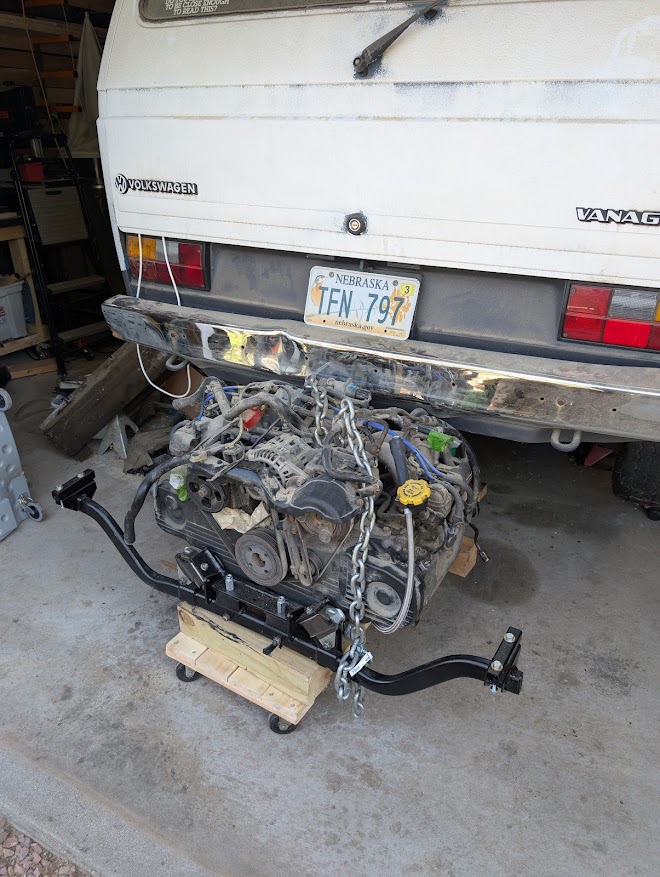 I have finally came back to my long abandoned Vanagon project. One of the first projects this year will be to get the new engine in the van, that starts with putting the aptly named mustache bar on the Subaru donor engine. This is done with a motor mount kit from Smallcar I’ve had sitting around for way longer than I’d like to admit.
